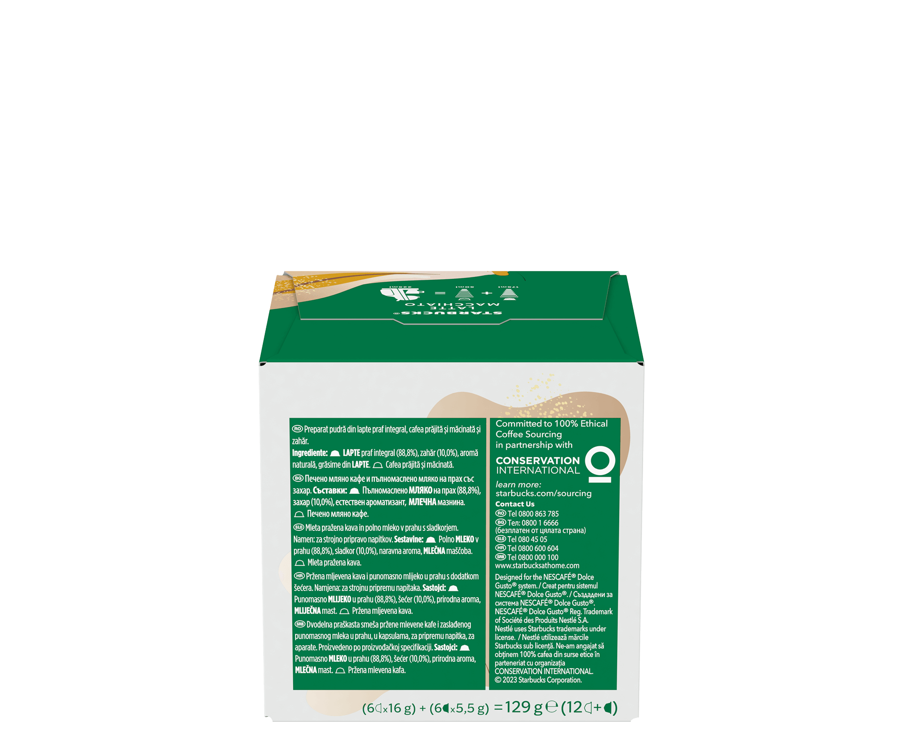 Вдъхновено от STARBUCKS® Latte Macchiato, което обожавате ― кадифено, богато на аромати и с любимия познат вкус, което може да приготвите у дома с Вашата кафемашина NESCAFÉ® Dolce Gusto.