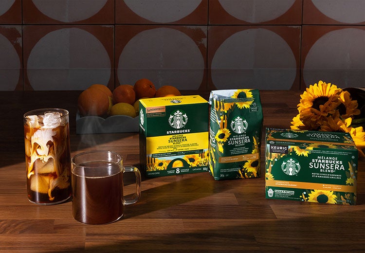 Le mélange Starbucks® Sunsera BlendMC est offert en café moulu, en capsules K-Cup® et en capsules Starbucks® par Nespresso®