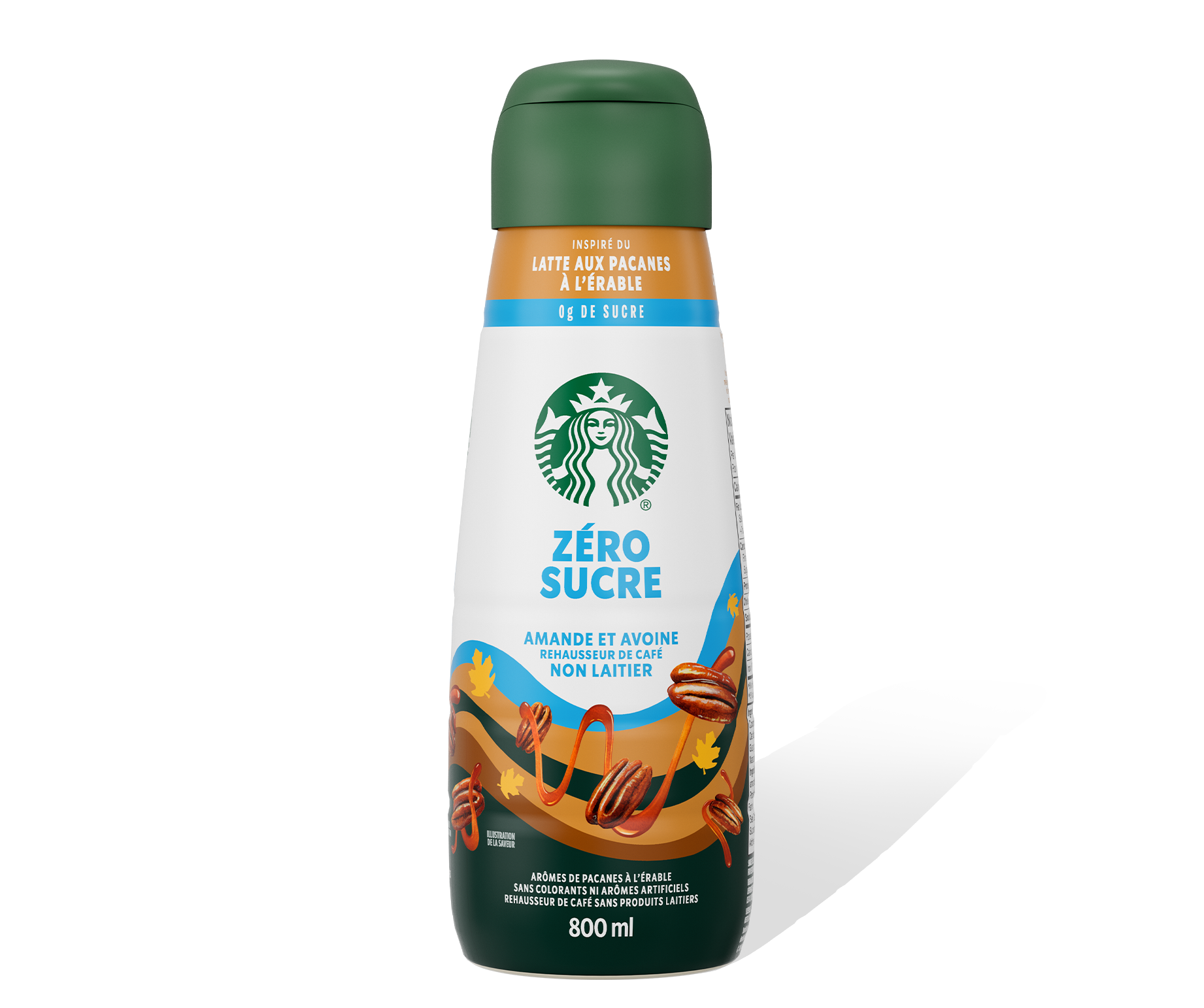 Nous avons concocté notre rehausseur de café Starbucks® à partir d'un mélange riche et velouté d’amandes et d’avoine, agrémenté de doux arômes d'érable et de pacanes au beurre. Avec zéro gramme de sucre, il se marie parfaitement à votre café Starbucks® préféré. Pour un café délicieux.