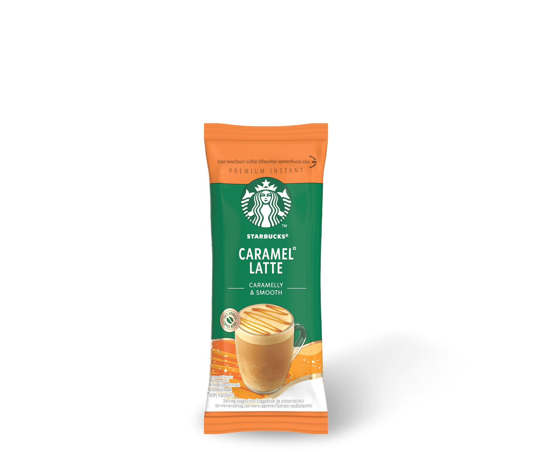 Savoure chez toi la douce note caramelisée de Starbucks® Caramel Latte Premium Instant ! Fabriquée à partir de grains de café 100 % Arabica et inspirée du classique Caramel Macchiato, cette boisson Premium Instant est préparée dans les règles de l'art avec du lait et un goût de caramel, puis recouverte d'une couche de mousse veloutée.