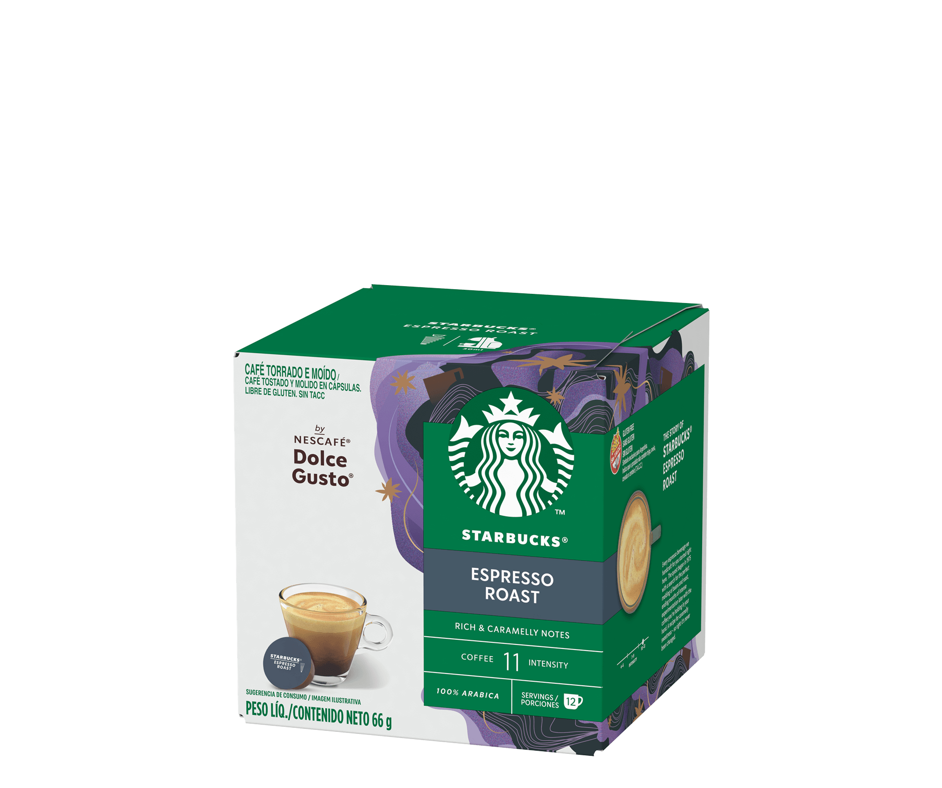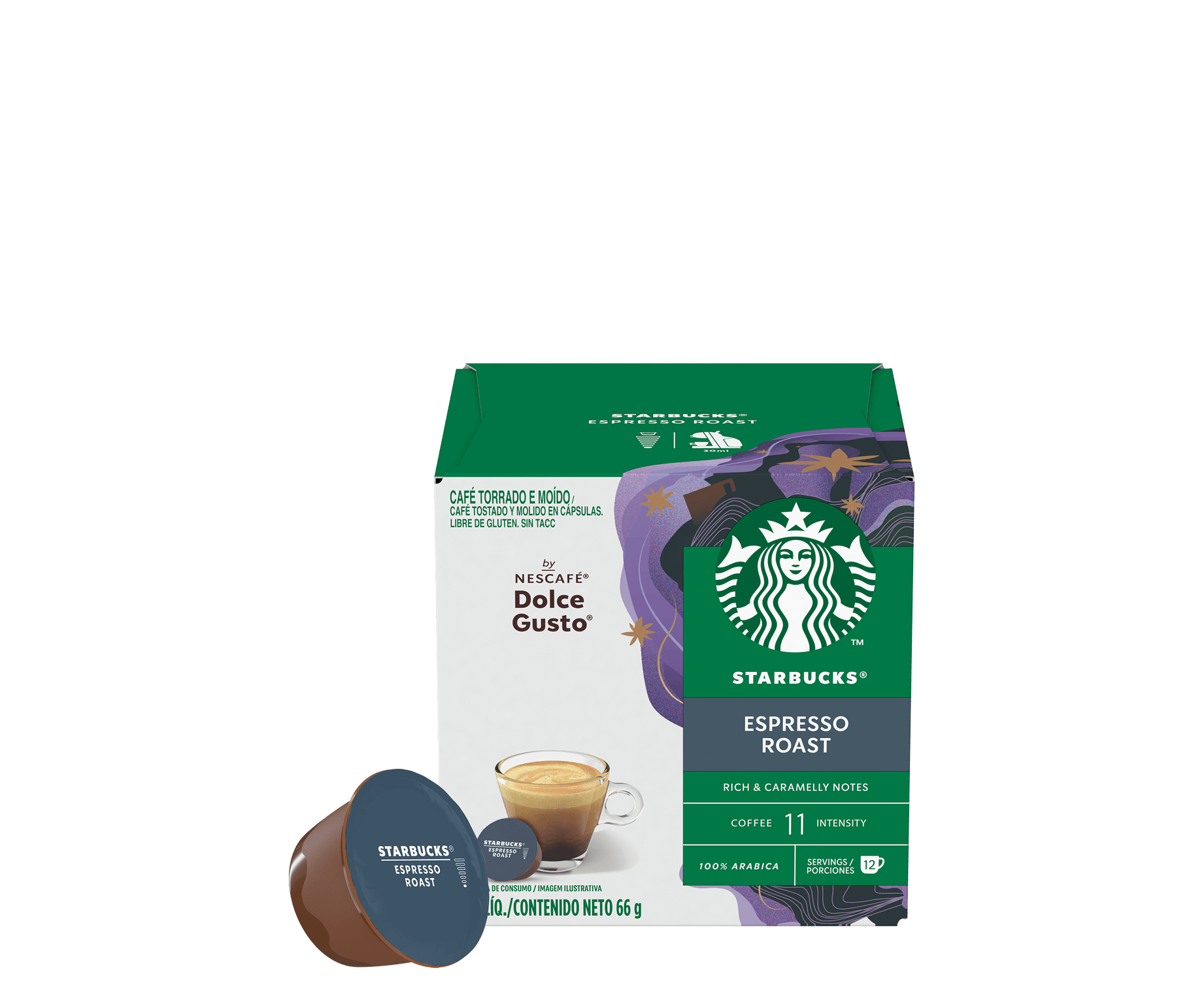 Experimenta el equilibrio perfecto de notas audaces y ahumadas con una delicadeza suave y cremosa con el Starbucks® Espresso Roast de NESCAFÉ® Dolce Gusto®.