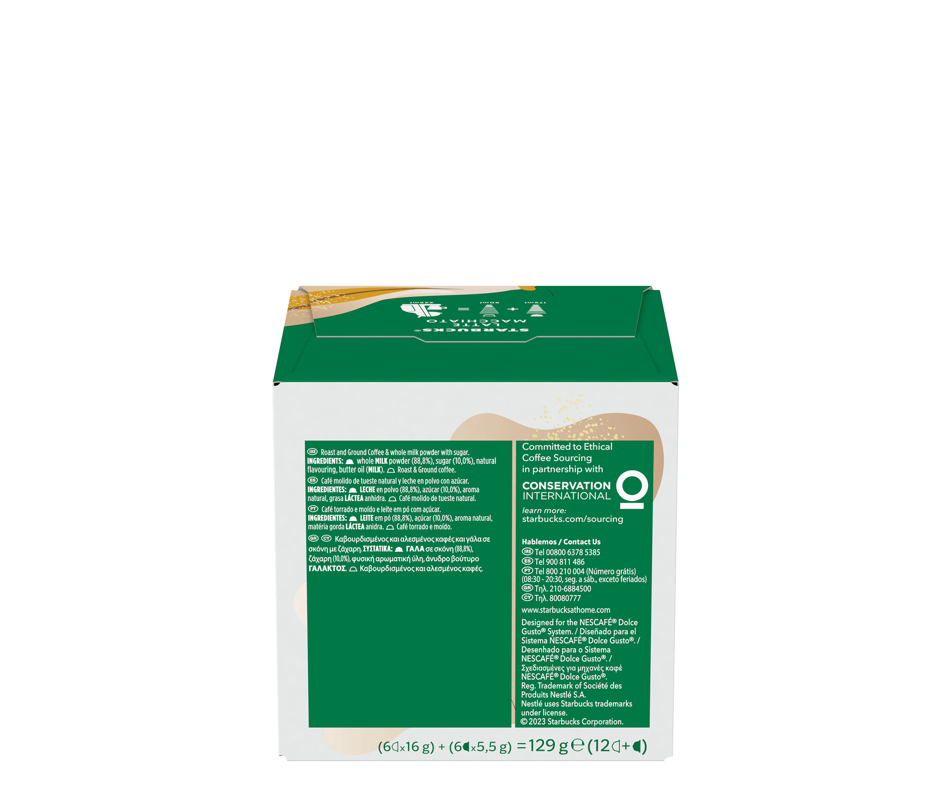 Disfruta de la perfecta armonía del Starbucks® Latte Macchiato de NESCAFÉ® Dolce Gusto®. Este espresso de tueste medio, con capas de leche cremosa y espumosa, está elaborado a la perfección con tu máquina NESCAFÉ® Dolce Gusto® en casa.
