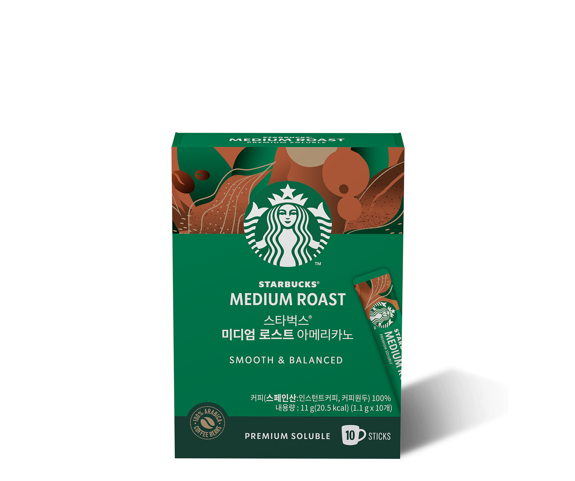 편리한 개별 서빙 스틱에 담긴 파우더 타입으로 나만의 스타벅스® 미디엄 로스트 프리미엄 커피를 즐겨보세요.