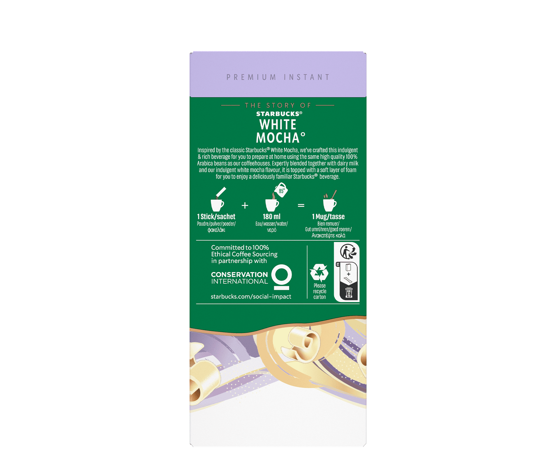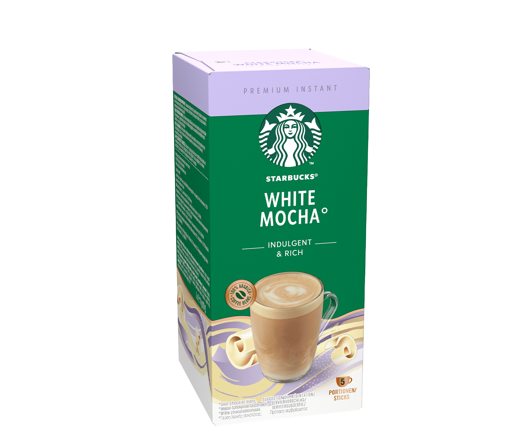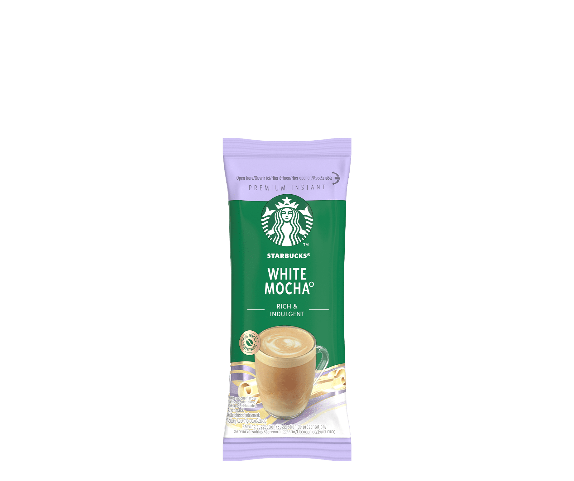 Onze Premium Oploskoffies zijn geïnspireerd op onze iconische Starbucks® koffies, vakkundig gebrouwd met dezelfde kwaliteitsvolle Arabica-bonen als onze koffiebars, melk en witte mokkasmaak. Deze koffie is afgetopt met een zacht schuimlaagje zodat je thuis kan genieten van een heerlijk vertrouwd Starbucks®-drankje.