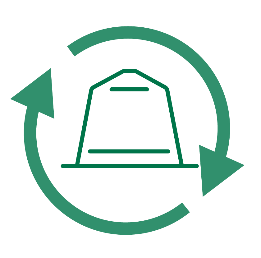 80% do alumínio das nossas cápsulas é reciclado. O benefício de usar alumínio reciclado está relacionado com a poupança de energia usada na produção do alumínio, por essa razão é o mais adequado para ser usado um modelo de negócio circular.