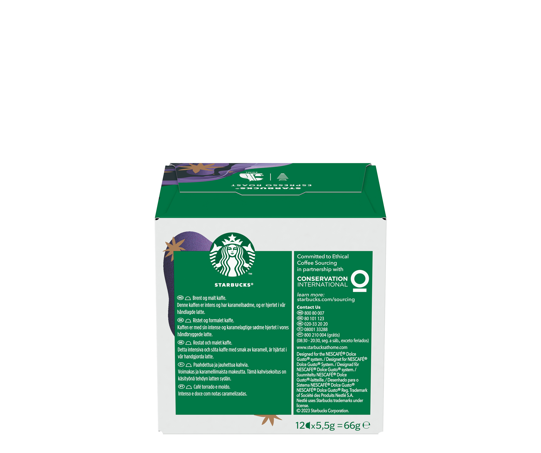 Upplev den perfekta balansen av kraftfulla, rökiga toner och en mjuk, krämig läckerhet med Starbucks® Espresso Roast från NESCAFÉ® Dolce Gusto®.